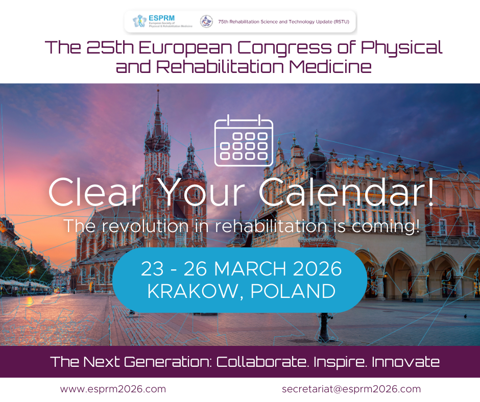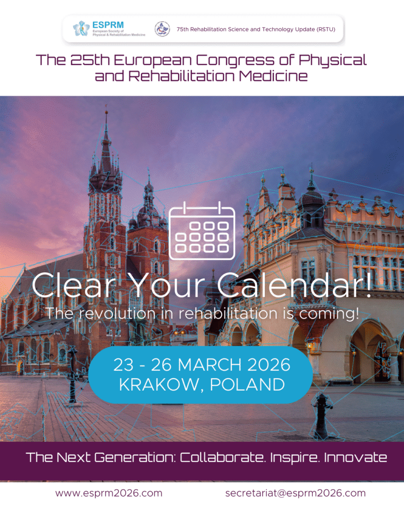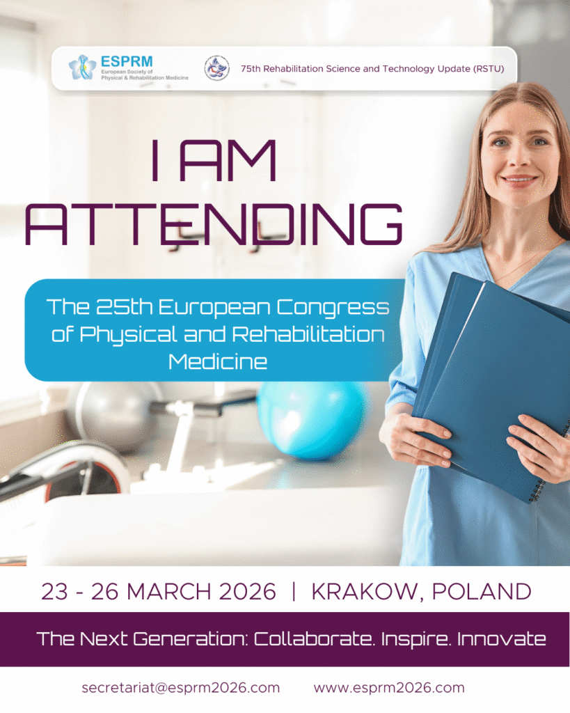 I am pleased to announce that I will be attending the 25th European Congress of Physical and Rehabilitation Medicine (ESPRM 2026) from 23-26 March, in Kraków, Poland, with the theme: Next Generation: Collaborate.Inpsire.Innovate.