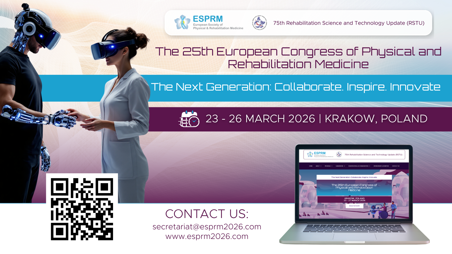 I am pleased to announce that I will be attending the 25th European Congress of Physical and Rehabilitation Medicine (ESPRM 2026) from 23-26 March, in Kraków, Poland, with the theme: Next Generation: Collaborate.Inpsire.Innovate.